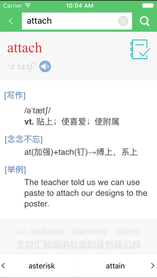 海词词典携手北京汇智博纳教育科技有限公司官方权威正版发布,具有手机上的便捷学习功能,还有清晰发音、生词收藏和复习背诵等辅助学习功能。选择正版软件,学习更有保障!(版权所有,盗版必究)