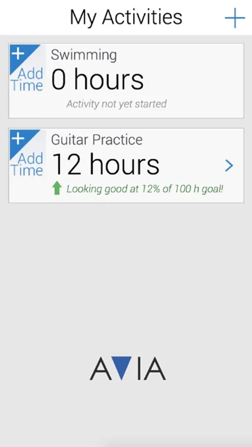 You can set a goal of how many hours to reach before an end date and track your progress. My Activities shows which ones need your attention at a glance, and just tap an activity to see how you're doing on a progress chart.