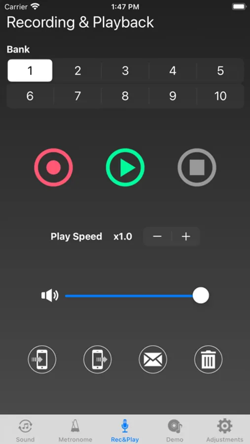 You can also save the performance data from Piamate to your iPhone, where you can send it to someone else via email, or receive new performance data and play it back on your Piamate system.