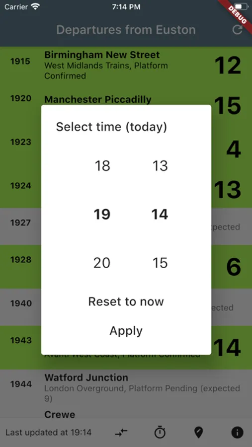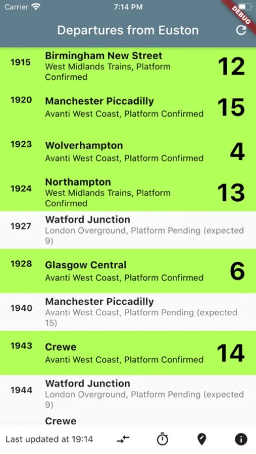 All departures are shown along with their expected platform. When the departure turns green, the platform has been confirmed by the train companies.