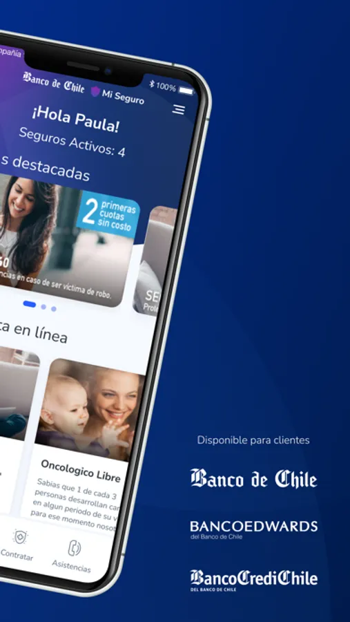 Mi Seguro es una aplicación diseñada para resolver las distintas necesidades relacionadas con productos de seguros, dirigida a clientes del Banco de Chile, Banco Edwards | Citi y Banco CrediChile.