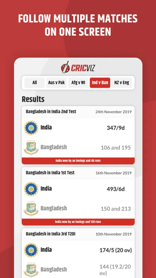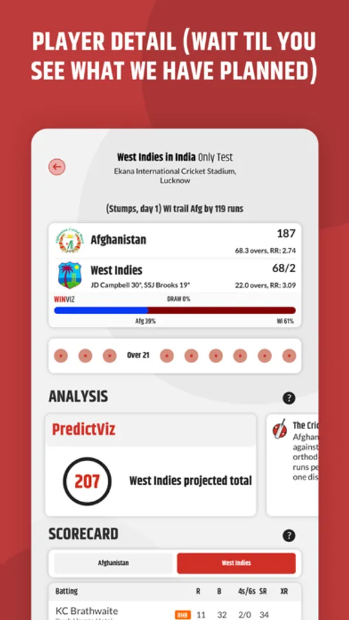 In this version, you can access WinViz, PredictViz and PitchViz (where available), alongside some of the fastest ball-by-ball updates of any cricket app, fed by the industry’s most comprehensive cricket database.