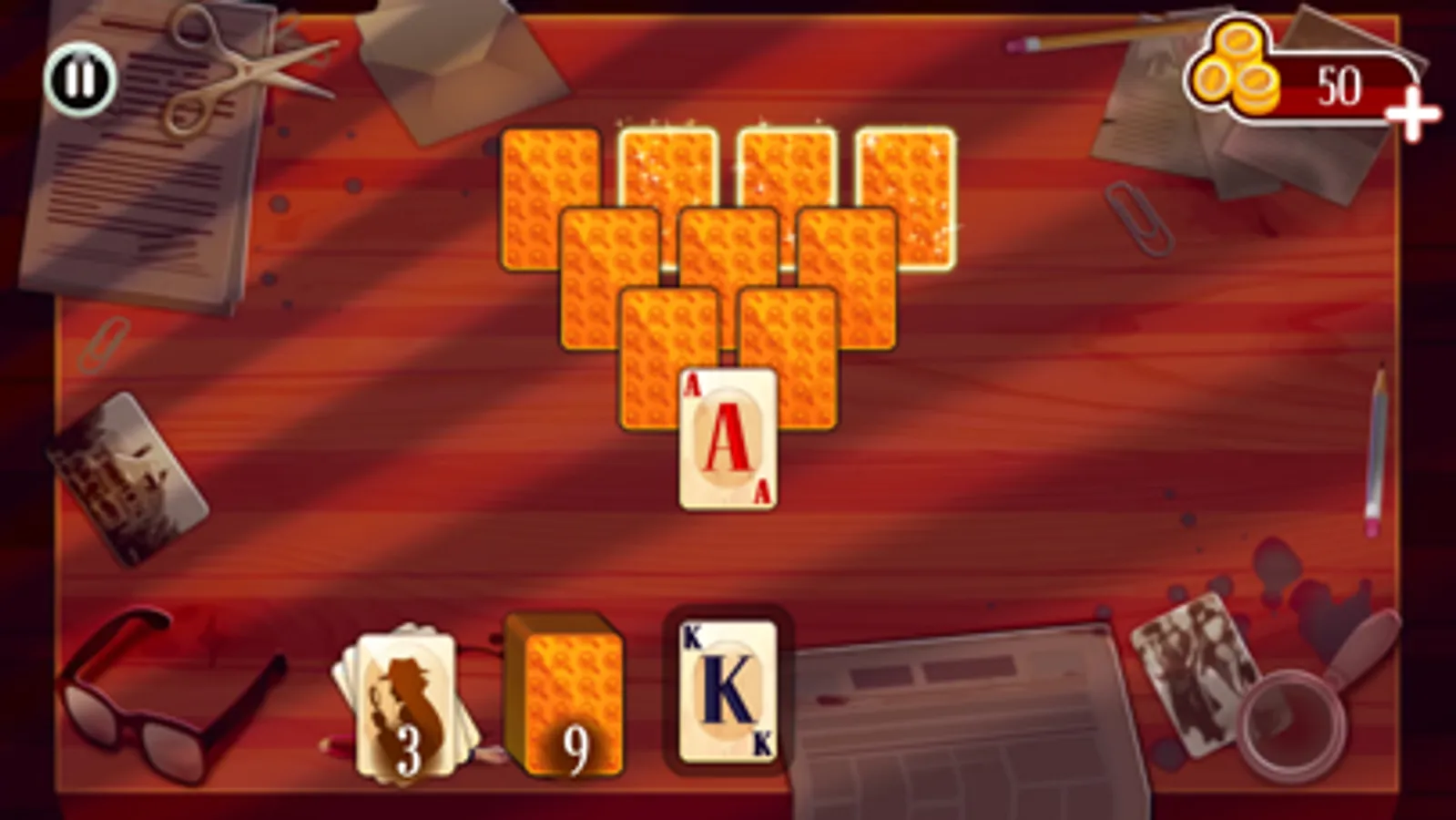Detective Spade has a puzzling case in his hands and an ace up his sleeve. Unravel the mystery that took over Ace Town by finding all clues hidden beneath challenging Pyramid Solitaire puzzles. Can you crack the case?