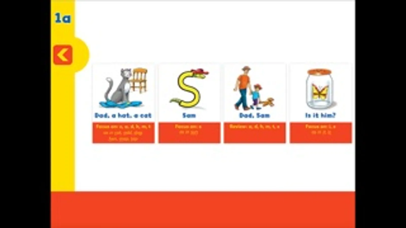 Phonic focus: c, ă, ā, d, h, m, t, s, ĭ, ī, n, g, o, ō, p, s (plural), s/z/, ĕ, ē, ss, ŭ, ū, k, ck, ng