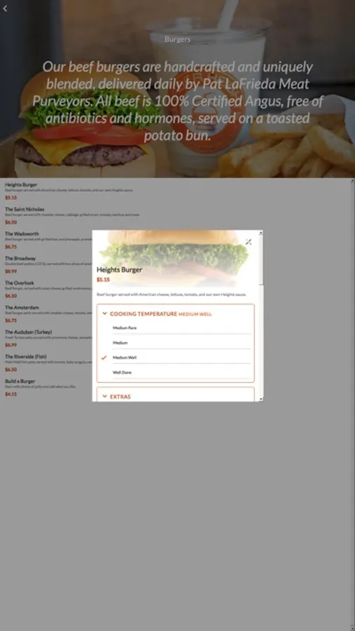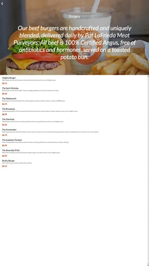 Here at Burger Heights, we’ve elevated the fast food experience, bringing together the freshest ingredients in unique combinations for irresistible burgers, dogs, and more. These aren’t your basic burgers – we source our beef, turkey and lamb from Pat LaFrieda Meat Purveyors with daily deliveries to ensure the highest quality. Your burger is always made to order and served on a toasted bun with farm-fresh produce. Our guacamole, coleslaw, and signature Burger Heights sauce are all made in house. For something lighter try the Mahi Mahi burger with homemade coleslaw and our black bean or mushroom veggies burgers. All of our shakes are made with Italian gelato for a thicker, creamier shake and come in a variety of flavors including our customer favorite Nutella®. Whether you order in person or online, your burger is made exactly the way you want it, arriving hot, fresh, and tasty every time.