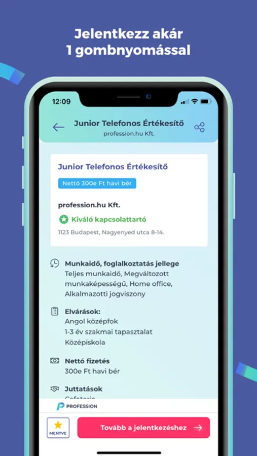 Nincs feltöltve önéletrajzod? Mentsd el az állásajánlatot mobilon és jelentkezz az állásra később bármilyen eszközről.
