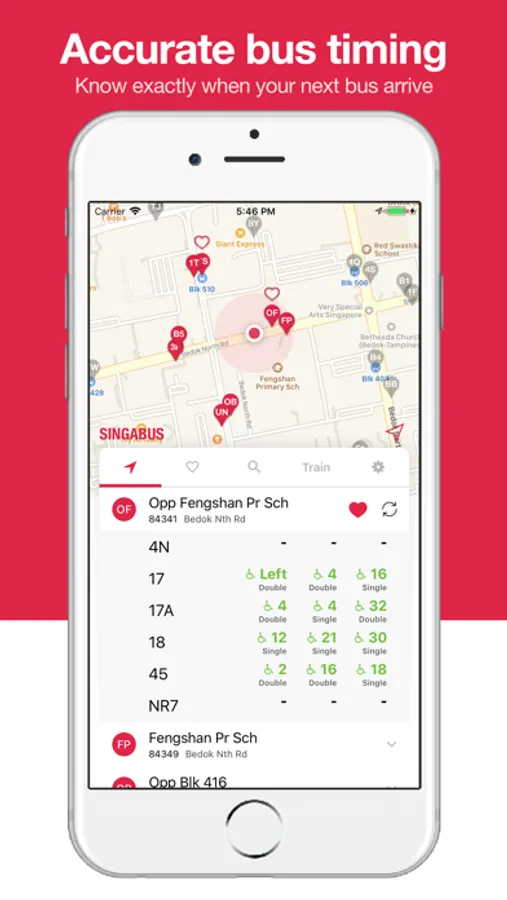 - Save your favourite bus stops in your Favourites for quick access.