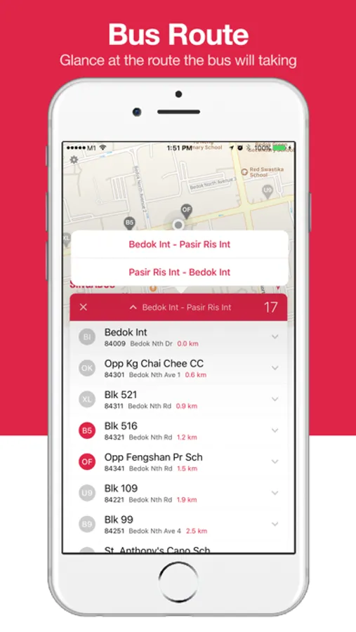 - Alphabetic labelled pin-points on the map for quicker identification of bus stop