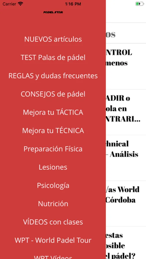 ** ACTUALIDAD: donde encontrarás las últimas noticias sobre pádel y artículos publicados con consejos, vídeos, etc. Es la sección principal donde podrás entrar cada día y descubrir las novedades sobre el mundo del pádel.