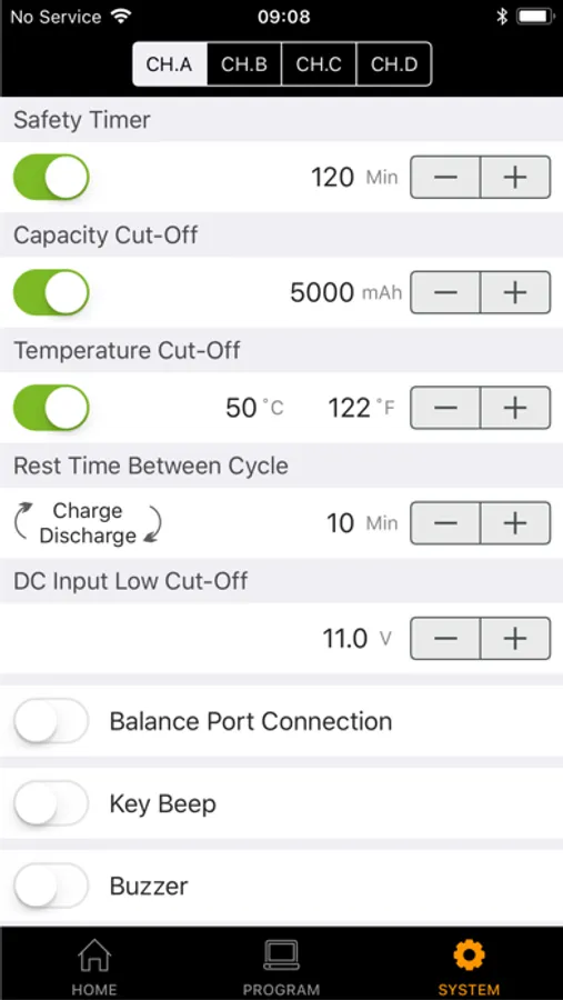 Adjustable system preferences allow you select the optimal settings for your battery, helping you to consistently achieve high performance.