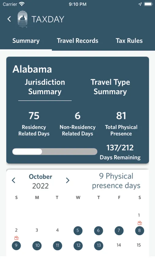 • At-a-glance travel summary: A “just the facts” snapshot of your travel and taxable days in any jurisdiction is at your fingertips.