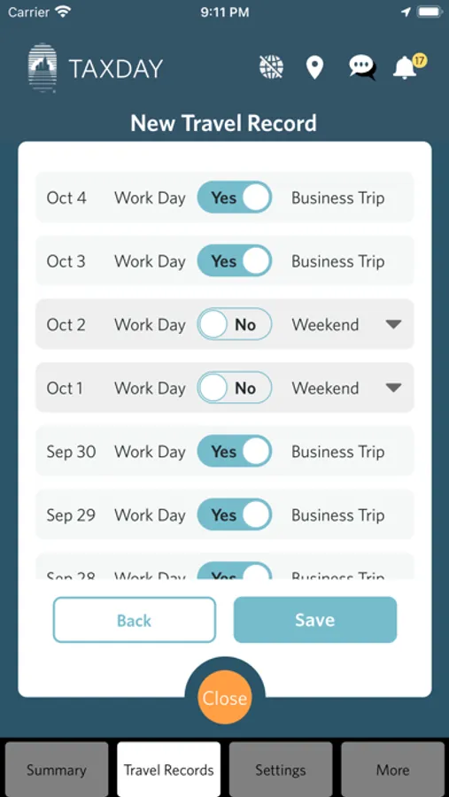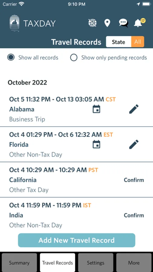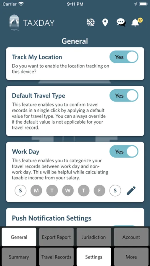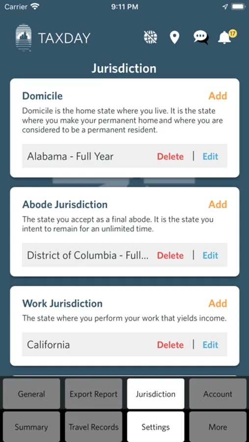 TaxDay is the perfect tool to help frequent interstate business travelers and people with multi-state residency plan and accurately track taxable days (and now includes New York City tracking!). It runs silently in the background, using your phone's GPS, and a comprehensive database of state-by-state residency tax rules, to securely track travel. And, when traveling outside the U.S., TaxDay will now track that as well, indicating the specific travel for over 150 countries countries. Smart notifications and an intuitive reporting interface make it easy to manage records and generate an accurate, complete report in case audits.