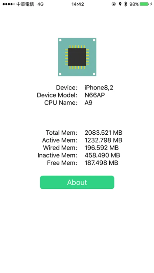 CPU Identifier is an application to let you know more about your device. It can show not only the type of your device's CPU, but also memory usage and more info.