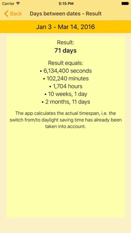 The app automatically converts the result into different time units like years, days, seconds, minutes, hours (please see screenshots).