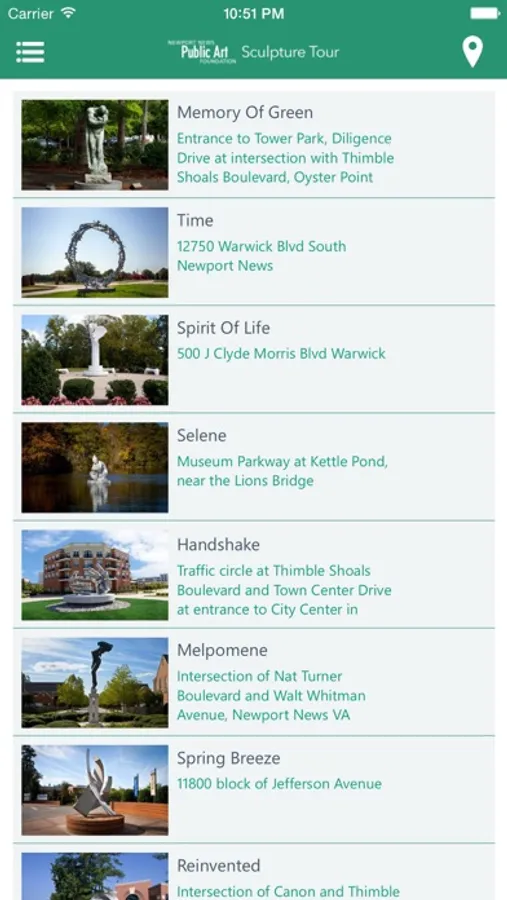 A guided tour of some of the major Newport News, Virginia works of art - on your smart phone. One of the best ways to enjoy art is to listen to the artist talk about a work, about why and how it was created, about what the artist was thinking and trying to accomplish. A personal "tour" with the artist is only a download away.