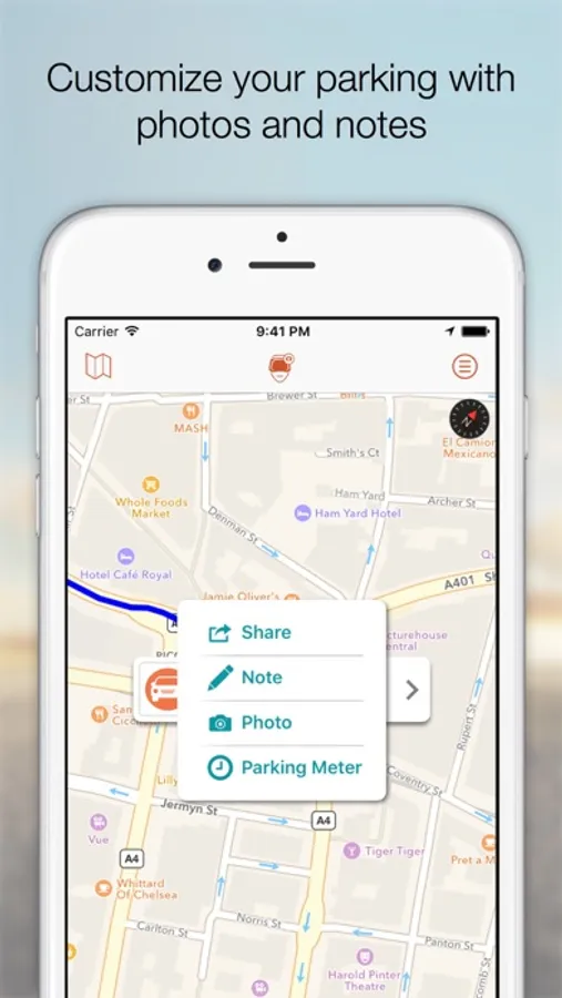 You can also customize your parking with a great photo to remember better where you were.
