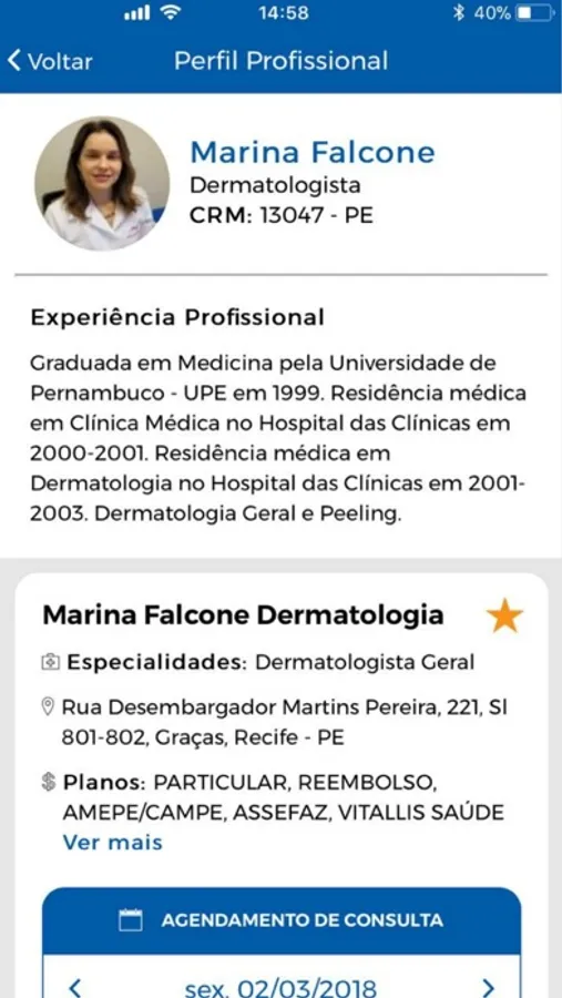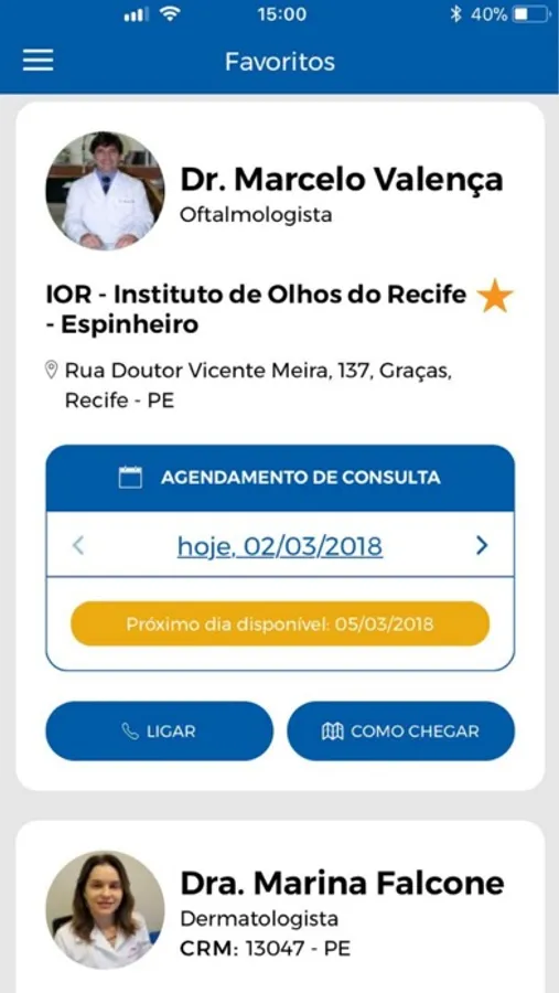 *Fotos e dados sobre os profissionais nas capturas de tela são fictícios