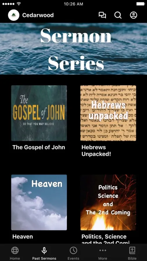 The Cedarwood Church app was developed with the Subsplash App Platform.