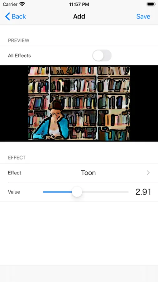 saturation, contrast, brightness, sketch, cartoon, etc...
