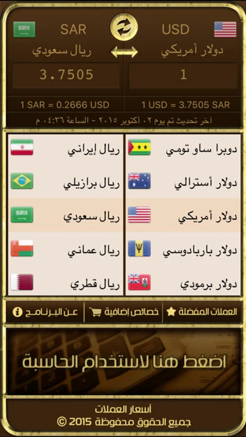 أسعار العملات العالمية تطبيق يتيح لك معرفة أسعار العملات العالمية والمعادن الهامة لأكثر من ١٥٠ عملة عالمية بشكل بسيط وباللغة العربية