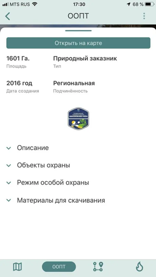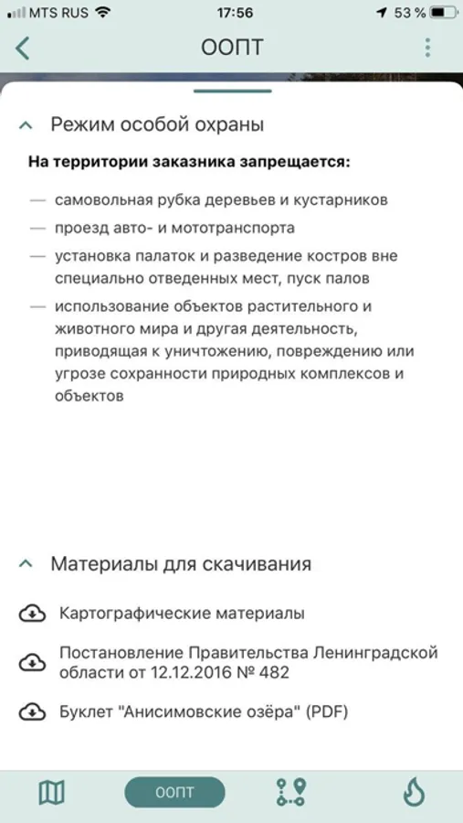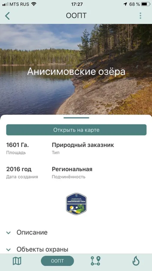В нем собраны все региональные особо охраняемые природные территории (ООПТ): заказники, памятники природы и природные парки.