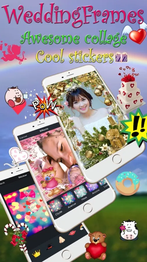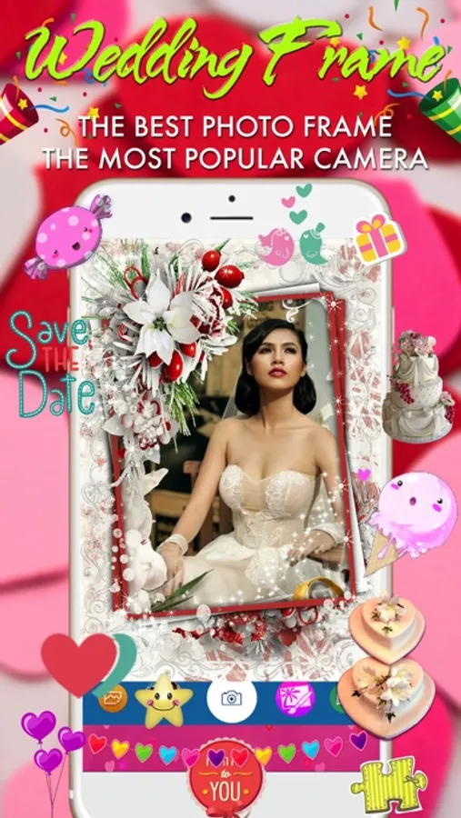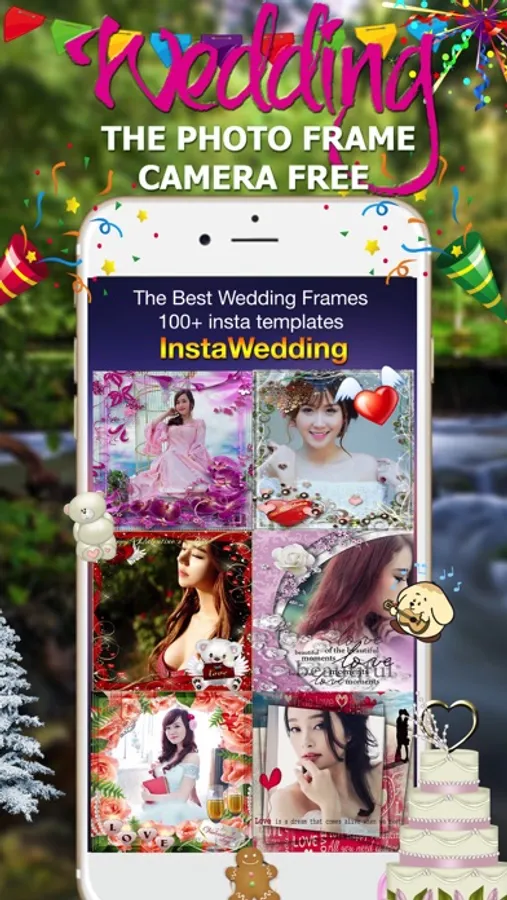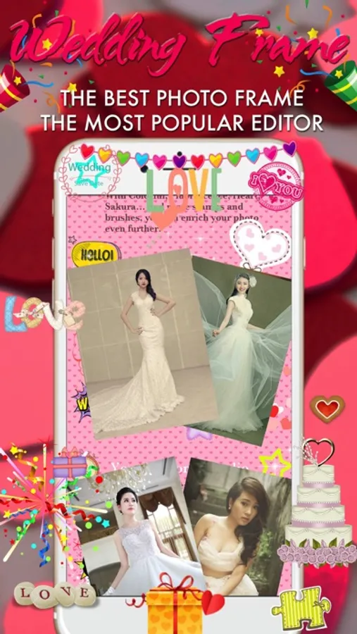 - With a large number of beautiful decorations, InstaWedding Photo Frame presents your individualized photos.