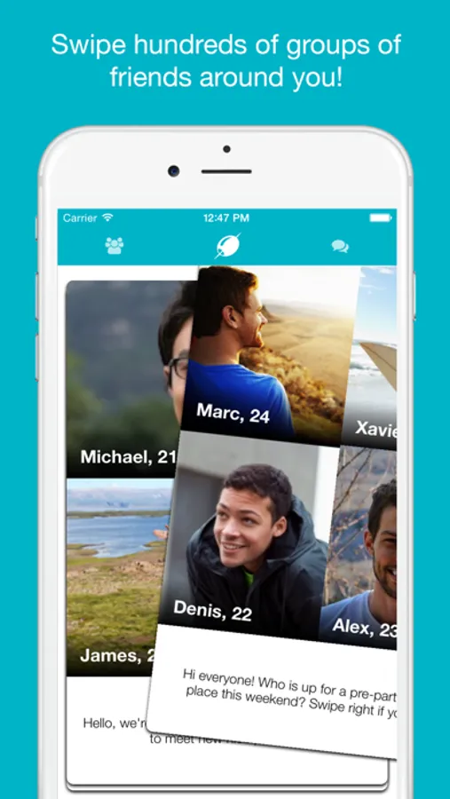Groupers is a social application that allows you to meet new groups of friends around you. The same way you and your friend would meet a new group of persons during an event, a dinner, or a party, Groupers gives you the opportunity to do this through your iPhone/iPad by swiping hundreds of nice groups of people near your area. All of this using our sixth sense of geolocation given by our device.
