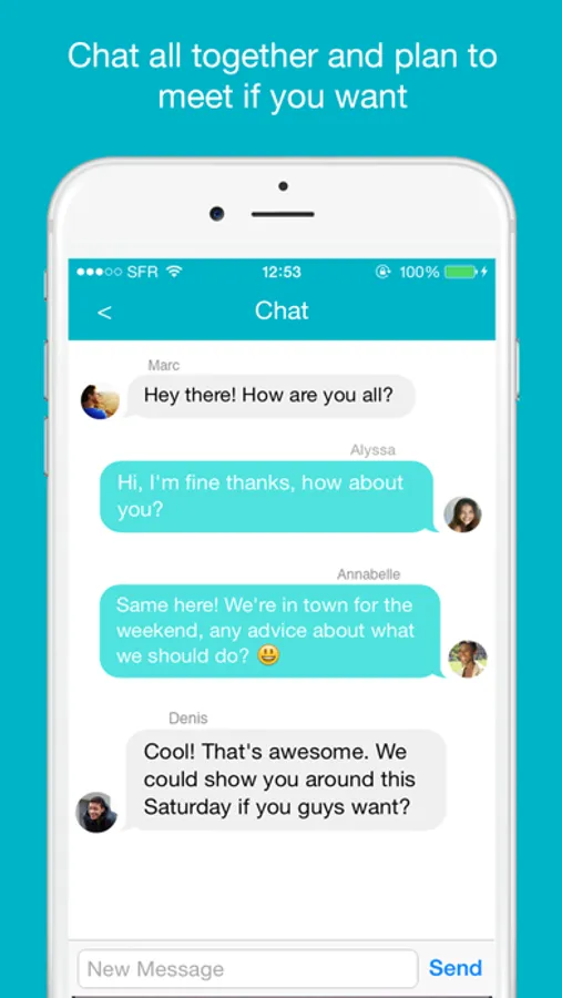 4. If at least one person in each group is interested by the other group in both side, then there is CONTACT! You can then all chat in a big group conversation, introduce yourselves to each other, and if you get along, plan a real-life activity!