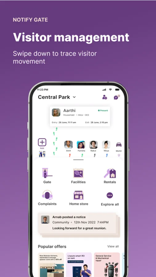 Through the ApnaComplex application, residents of a community can receive automated alerts and notifications such as,