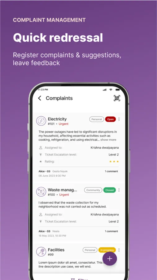 Scan the QR code assigned to each facility and raise complaints if the said facility is malfunctioning. This feature is unique to ApnaComplex.