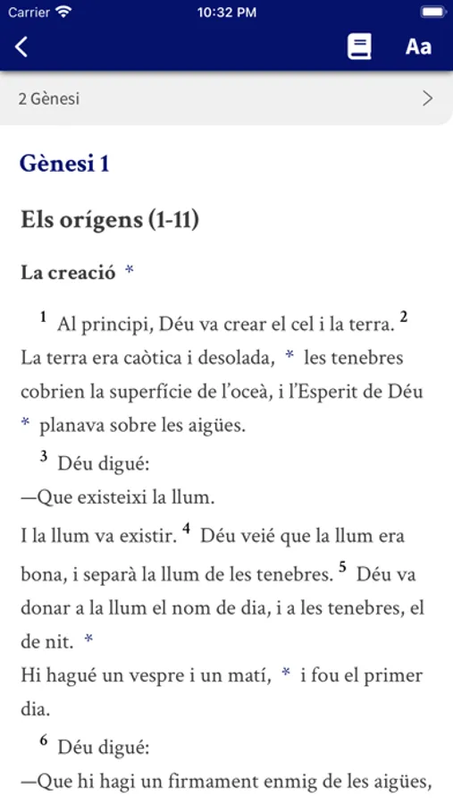 L’aplicació conté el text sencer de la Bíblia, tant de l’Antic Testament com del Nou Testament (inclosos els llibres deuterocanònics).