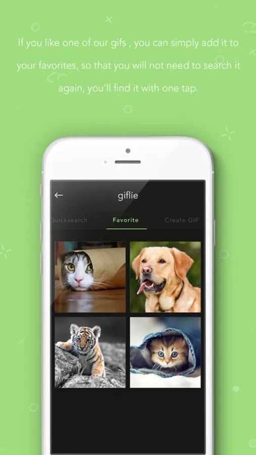- If you like one of our gifs, you can simply add it to your favorites, so that you will not need to search it again, you'll find it with one tap.