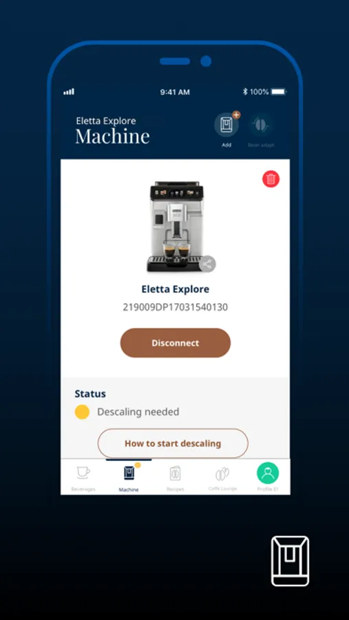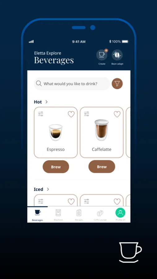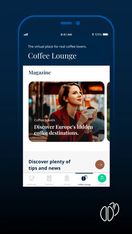 with just a few taps you can fully manage your connected coffee machine, explore the world of coffee in our Coffee Lounge and discover and enjoy exclusive recipes.