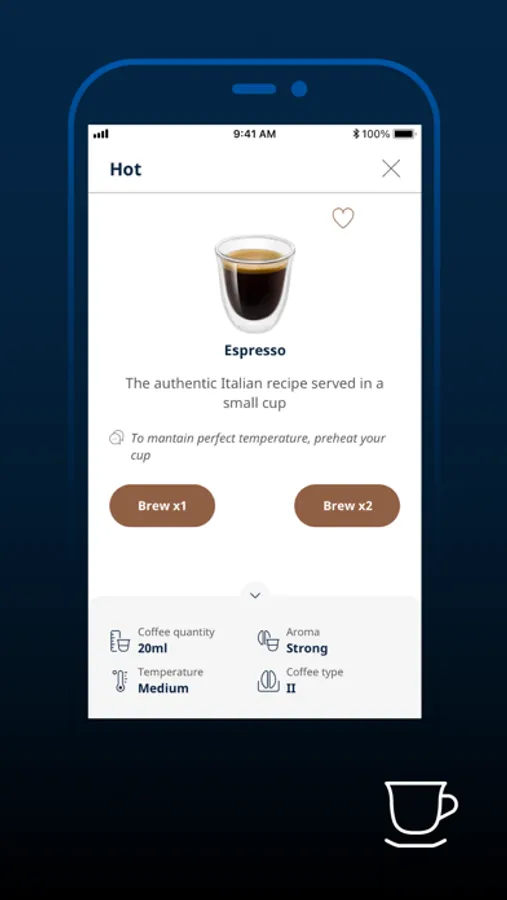 Discover and explore the world of coffee with your De'Longhi coffee machine directly on your iPhone.
