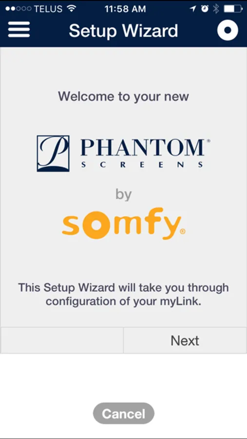 The Phantom Screens® remote app requires at least one Somfy myLink WiFi to RTS Interface and existing RTS motorized product(s) with at least one programmed RTS hand-held, in-wall or table top control.
