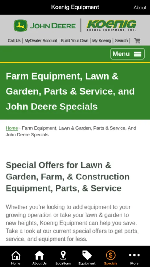 With this application you can browse our used equipment, receive notifications of upcoming sales and customer events, get the latest agricultural news and weather, schedule your equipment for service, and more.