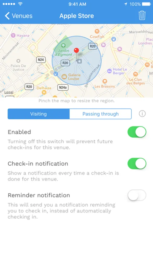 Chekky will automatically check you in on Swarm / Foursquare at the places of your choice. Never forget to check in, because Chekky will take care of that for you! By the way, Chekky is very battery friendly!