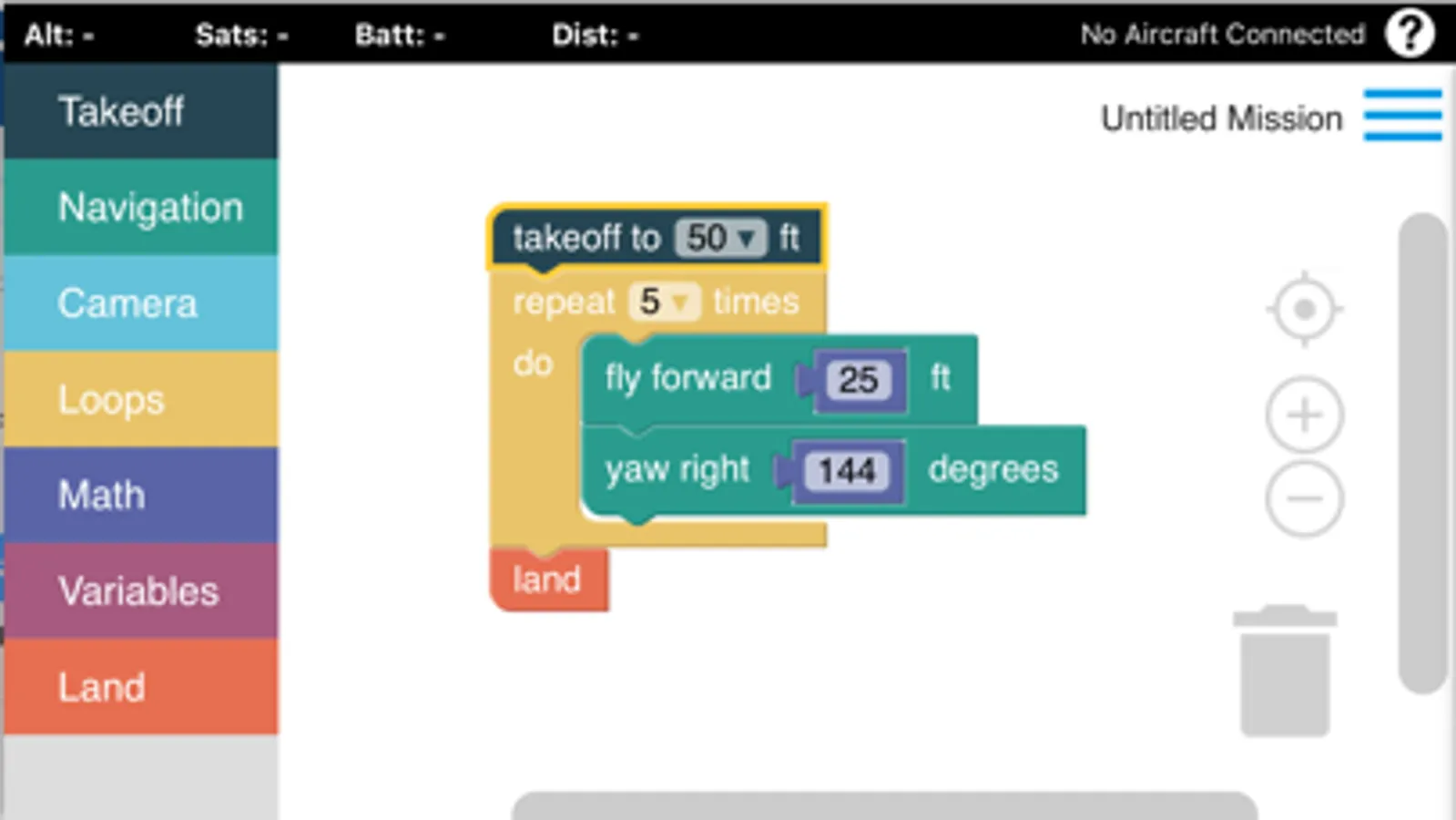 DroneBlocks allows users to easily program fun and useful missions using block programming with the DJI Phantom 3, DJI Phantom 4, Mavic Pro and Inspire 1. Users can drag and drop blocks onto the canvas to command their drone to follow a basic flight plan.