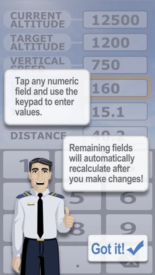 Built by a team of commercial pilots and air traffic controllers, Descent Calculator was designed with simplicity in mind. We've built you a HUGE ALWAYS-OPEN keypad that enables you to enter data easily, even in HEAVY TURBULENCE. Don't struggle with the traditional mobile keyboard that's too small, has unnecessary keys, and often hides itself when you need it most.