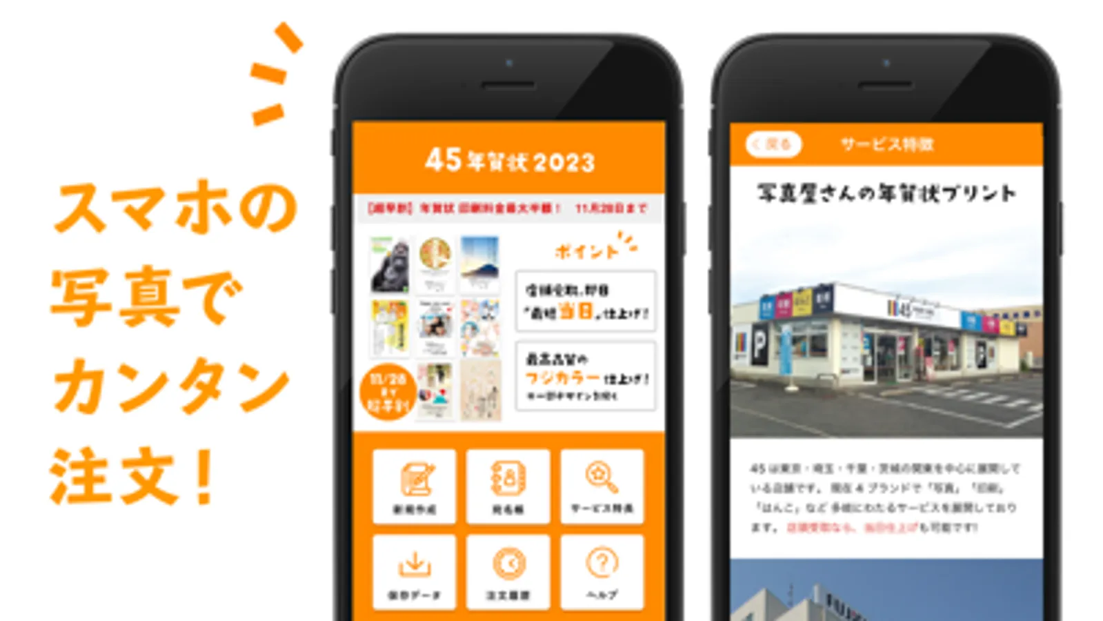 関東を中心に店舗展開する老舗の写真屋「45」の年賀状サービスです。