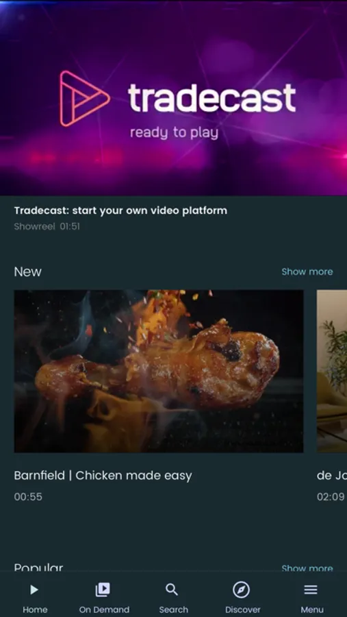 Meet Tradecast: the single-source solution for launching and monetizing your own online video platform. Including analytics, graphics, subscriptions, a custom player and native OTT apps for on-demand, live and linear broadcasting.