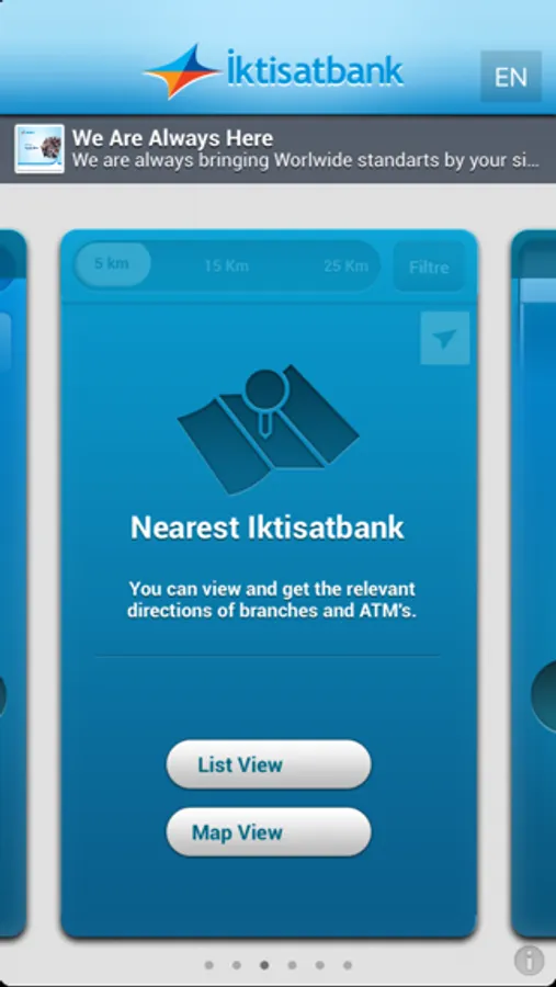 Even if you are not a Iktisatbank customer yet, you can use Iktisat Mobile Banking application when you need to. You can obtain information about Iktisatbank’s products and services, the exchange rates, the interest rates, find your nearest Branch & ATM and get the relevant directions, calculate loan and deposit rates plus much much more.