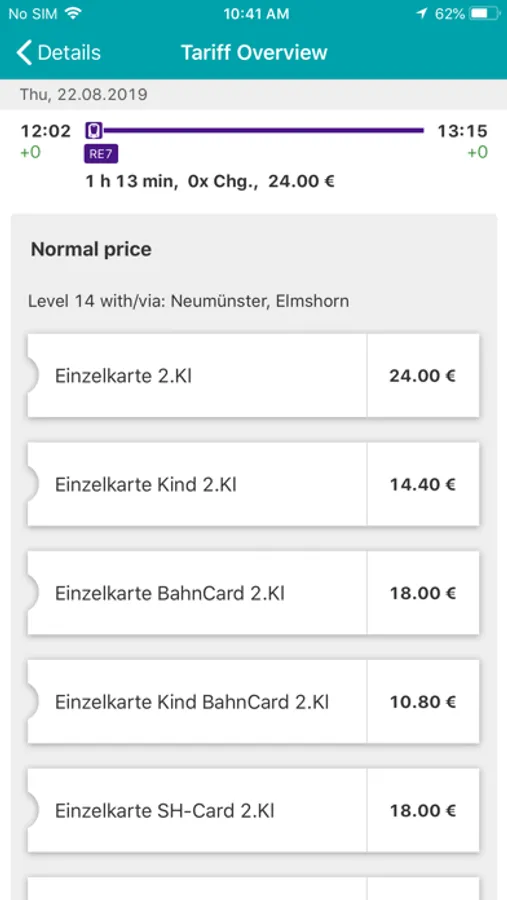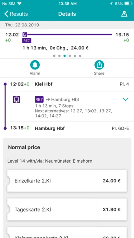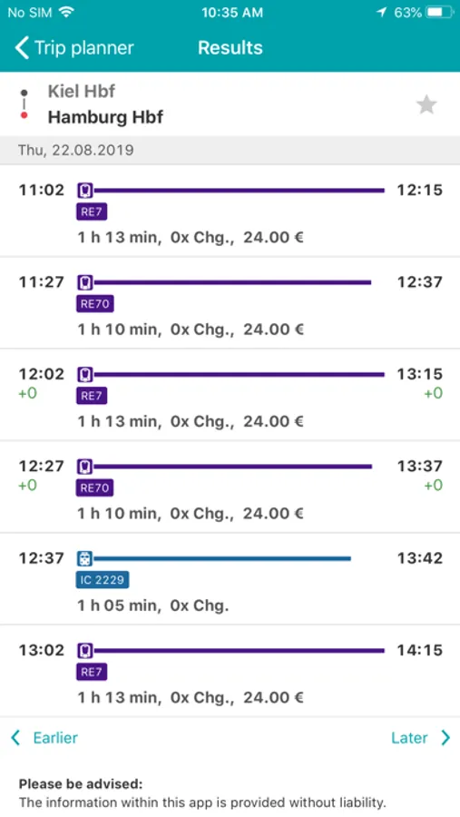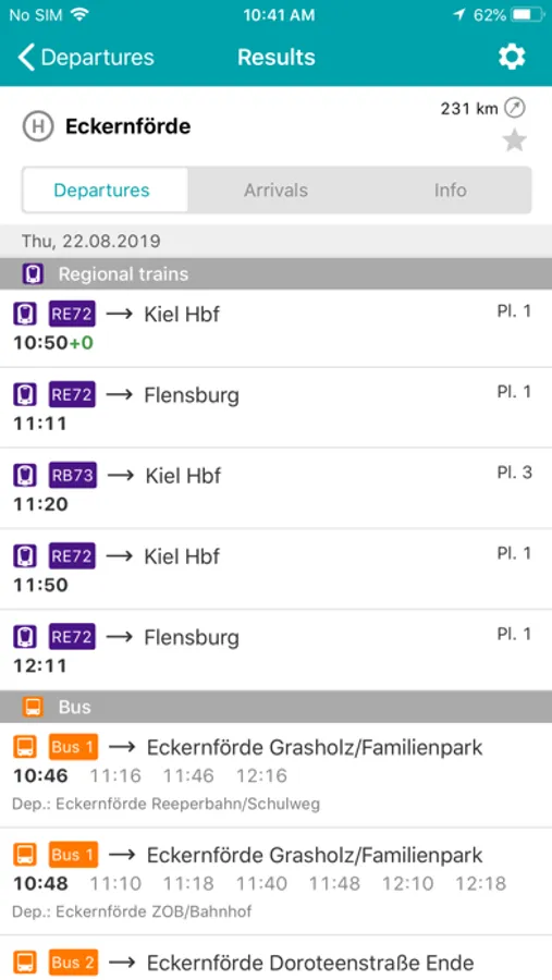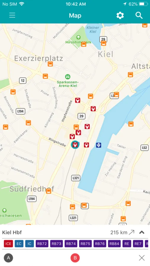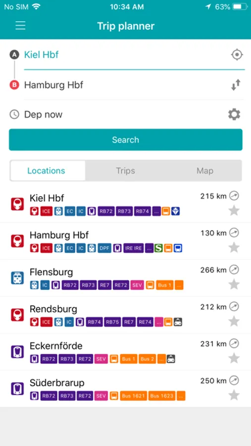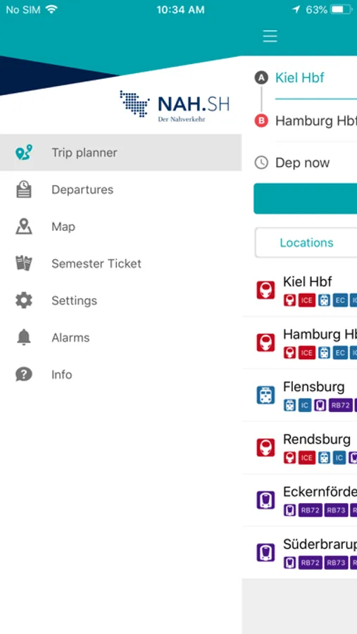 An individual journey planner for all trains and buses within Schleswig-Holstein: you can choose to search by your current location, a particular address, or the nearest bus or train station. Our journey planner gives you the fastest connections, the exact distance you need to travel, footpaths, platform number and transfer time.