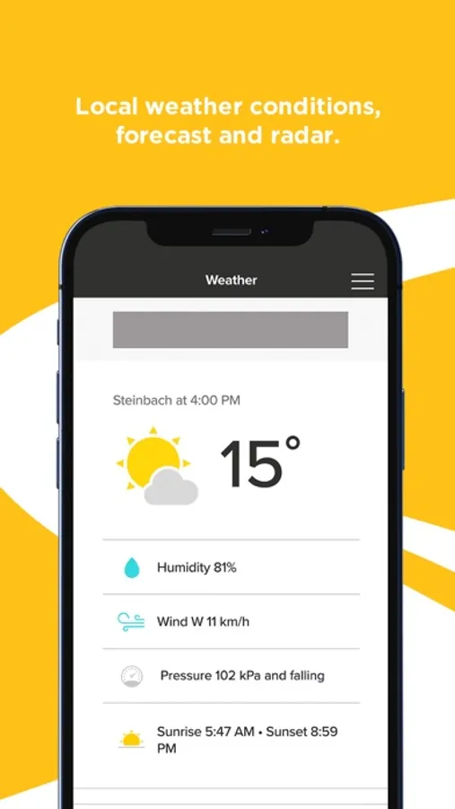 - Live local weather conditions, including hourly and 7-day forecasts and radar maps from Environment Canada