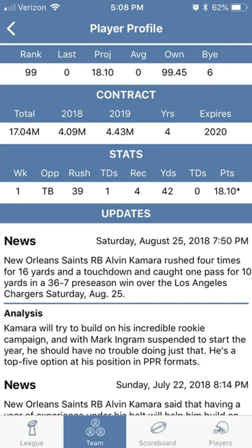 - Lineup Management - Make that last minute start-sit decision to give you the edge in your matchup