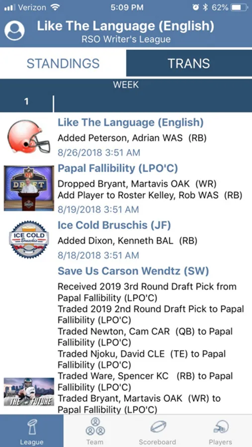 - League Info - See how your team stacks up in your league and who's making the latest roster moves