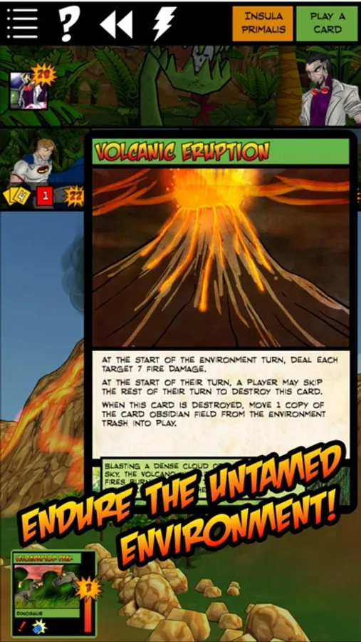 • The battle takes place in the primordial lost world of Insula Primalis - watch out for raptors!