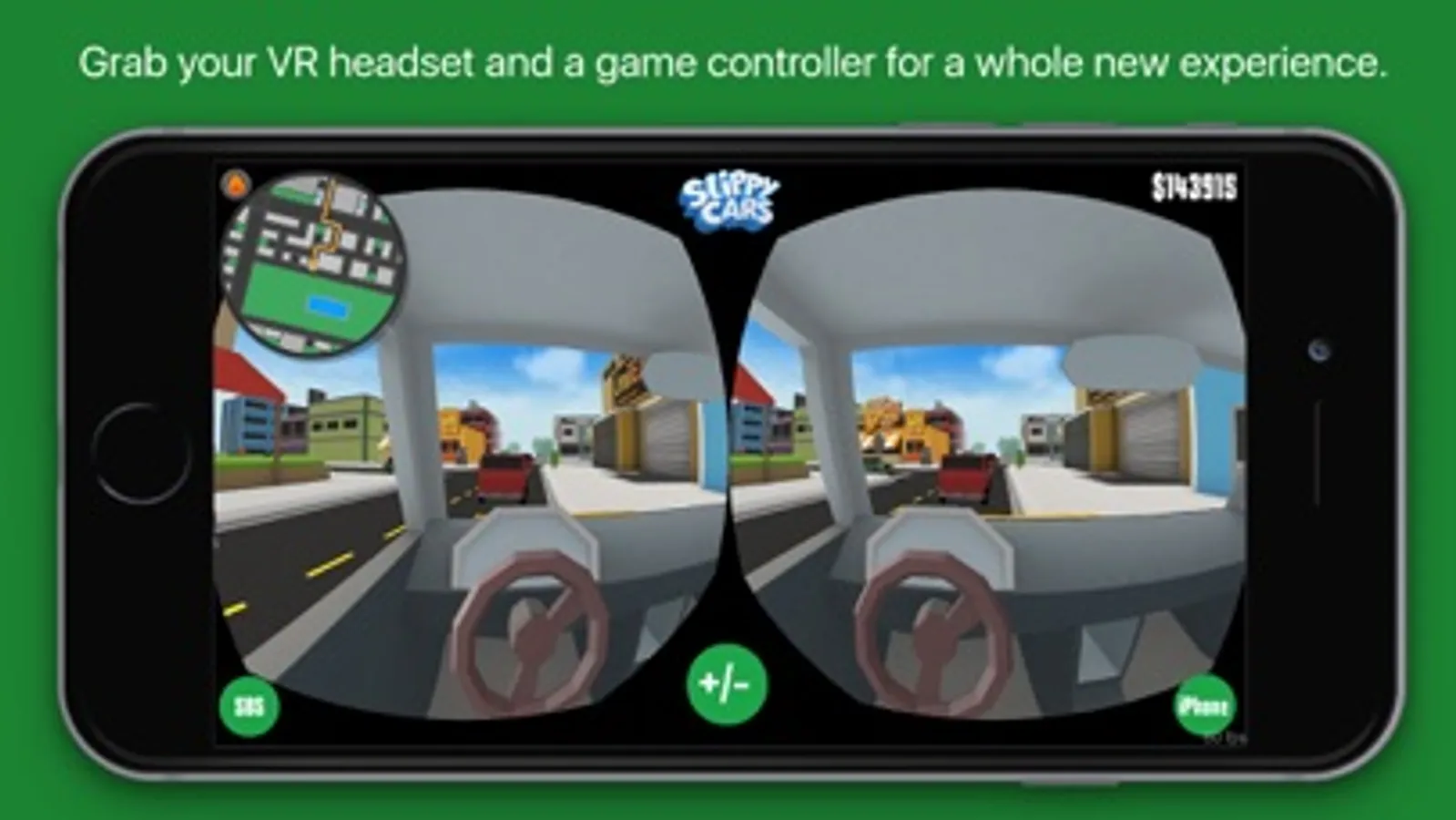 With a bluetooth controller and a Virtual Reality headset you can play Slippy Cars from a whole new perspective. Take a sneak peak into the multiplayer open world of Slippy Cars in VR.