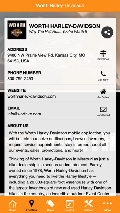 With the Worth Harley-Davidson mobile application, you will be able to receive notifications, browse inventory, request service appointments, stay informed about all our events, sales, promotions, and more!