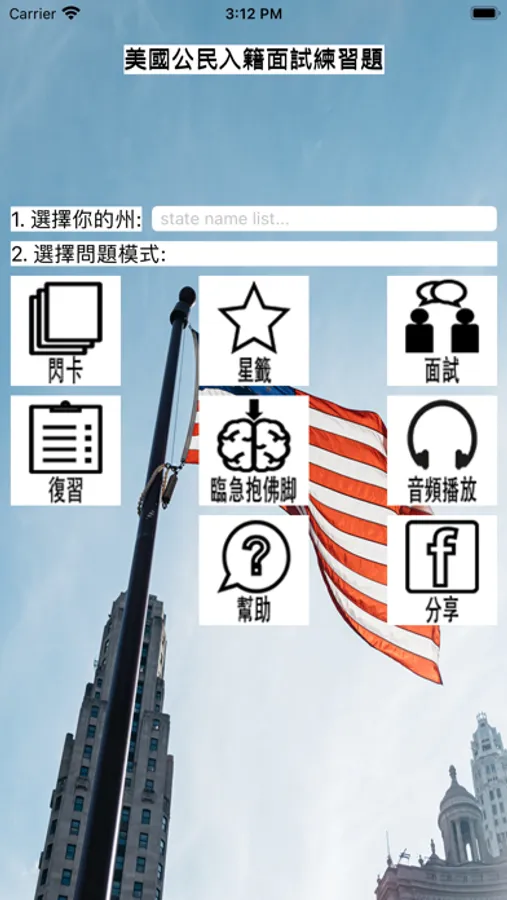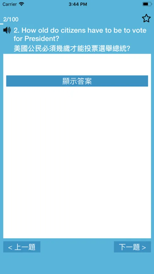 借助此免費的《美國公民實踐測試普通話》中文版,您可以為美國公民最終面試做準備。 為了成為美國公民,您需要正確回答十分之六的問題或正確回答二十個問題中的十二個(128個問題)。